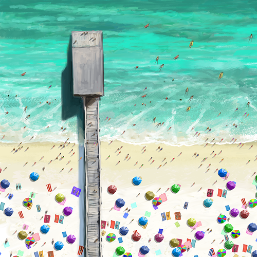 Embrace the essence of beach life with "Beach Time" by Page Pearson Railsback. This coastal painting captures the carefree spirit and vibrant energy of the seaside.